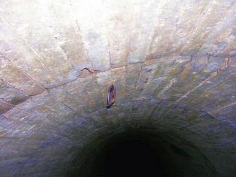 Keywords: Hlavní štola, netopýr.jpg Lomy Amerika Hlavní štola mezi Diabásovou a Podkováckou štolou Netopýr 2007 own Speleman Hlavní štola Lomy Mořina Unidentified Vespertilionidae