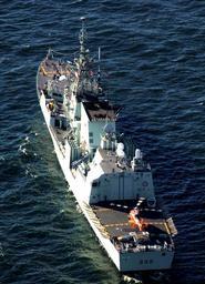 | Keywords: HMCS CHARLOTTETOWN ARRIVES IN CLEVELAND DVIDS1088658.jpg en CLEVELAND -- An Air Station Traverse City HH-65 crew landed on the fantail of HMCS Charlottetown for a series of maneuvers for the arrival of the 442-foot Canadian Navy frigate as it headed for Dock 32 in downtown Cleveland to participate in Patriot's Day observances Wednesday Sept 10 2008 The Charlottetown recently completed a six-month deployment to the Persian Gulf and Arabian Sea as part of Canada's continuing contributions to the campaign against terrorism known as Operation Enduring Freedom Photo by Petty Officer Bill Colclough/U S Coast Guard 2008-09-10 Petty Officer 1st Class William Colclough https //www dvidshub net/image/1088658 1088658 2013-12-11 23 46 CLEVELAND OH US PD-USGov Operation Enduring Freedom CGAS Traverse City Images from DoD uploaded by Fæ HMCS Charlottetown FFH 339 |