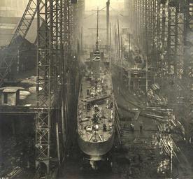 | Keywords: sunderland shipbuilding ship ship launches shiplaunches ship builders shipbuilders shipyard hms opal hmsopal william doxford & sons ltd williamdoxfordsonsltd torpedo boat destroyer torpedoboatdestroyer first world war firstworldwar battle of jutland battleofjutland black and white photograph blackandwhitephotograph slipway september 1915 september1915 sunderland history fair sunderlandhistoryfair 7 june 2014 7june2014 vessels river wear riverwear workers marine engineering marineengineering cargo ships cargoships supplies industrial maritime heritage maritimeheritage frame structure deck rail buildings door pole timber wood debris building material buildingmaterial chimney smoke mast rope chain roof wall window glass platform propeller hat overalls shirt support momentous unusual cylinder pipe warship ww1 black and white First World War torpedo boat destoyer HMS Opal, is prepared for launch at the East Yard of William Doxford & Sons Ltd, Sunderland, September 1915 (TWAM ref. DS.DOX/6/8). She was an M-class destroyer and took part at the Battle of Jutland. The Rivers Tyne and Wear were responsible for building many vessels, which served Britain during the First World War. This set remembers some of those warships that took part in the Battle of Jutland from 31 May to 1 June 1916. During the battle over 6,000 British sailors lost their lives and 14 Royal Naval vessels were sunk. The losses included the battlecruisers HMS Queen Mary and HMS Invincible, as well as the destroyers HMS Shark, HMS Sparrowhawk and HMS Turbulent, all built on Tyneside. Their memory lives on. (Copyright) We're happy for you to share these digital images within the spirit of The Commons. Please cite 'Tyne & Wear Archives & Museums' when reusing. Certain restrictions on high quality reproductions and commercial use of the original physical version apply though; if you're unsure please email archives@twmuseums.org.uk First World War torpedo boat destoyer HMS Opal, is prepared for launch at the East Yard of William Doxford & Sons Ltd, Sunderland, September 1915 (TWAM ref. DS.DOX/6/8). She was an M-class destroyer and took part at the Battle of Jutland. The Rivers Tyne and Wear were responsible for building many vessels, which served Britain during the First World War. This set remembers some of those warships that took part in the Battle of Jutland from 31 May to 1 June 1916. During the battle over 6,000 British sailors lost their lives and 14 Royal Naval vessels were sunk. The losses included the battlecruisers HMS Queen Mary and HMS Invincible, as well as the destroyers HMS Shark, HMS Sparrowhawk and HMS Turbulent, all built on Tyneside. Their memory lives on. (Copyright) We're happy for you to share these digital images within the spirit of The Commons. Please cite 'Tyne & Wear Archives & Museums' when reusing. Certain restrictions on high quality reproductions and commercial use of the original physical version apply though; if you're unsure please email archives@twmuseums.org.uk |