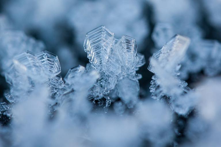 Keywords: hoarfrost eiskristalle winter snow cold frozen crystals white blue transparent nature geometric hexagon macro