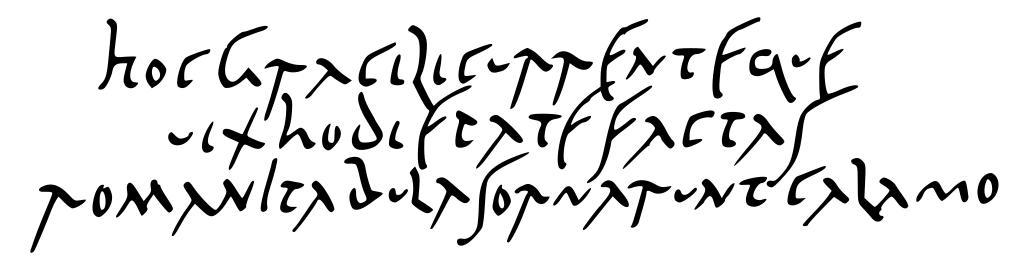 | Keywords: Hoc gracili currenteque.svg en This is a Latin elegiac couplet composed by myself which might be translated as With this slender and running pen the Romans decorated writing tablets which today scarcely have been brought to light The chief merit of this verse is that all letters of the Latin alphabet are used except K Y and Z 2014-02-05 00 23 15 Hocgracili jpg 150 original u Alatius vectorization u Carnby + Custom license marker 2014 02 04 en wikipedia Alatius Uploaded with UploadWizard Roman cursive Latin inscriptions |