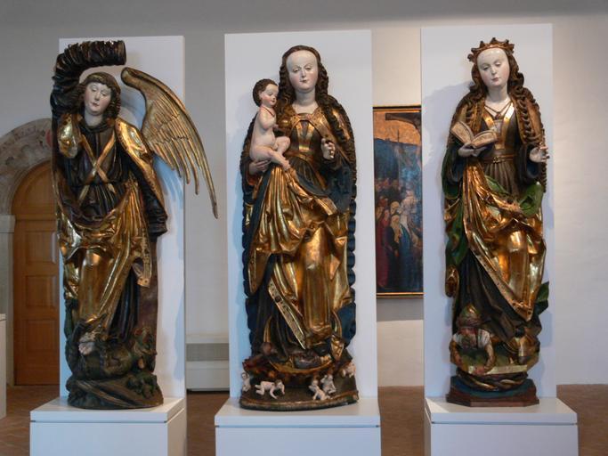 | Keywords: Hochaltar aus Zeitz Schreinfiguren.jpg Hl Michael Mondsichelmadonna und Hl Katharina vom Hochaltar der Michaeliskirche in Zeitz um 1520 Fassung von Pancratius Grueber 1520/1521 <br />Staatliche Kunstsammlungen Dresden Skulpturensammlung SAV 2024 SAV 2022 SAV 2023 ausgestellt im Schloßbergmuseum Chemnitz own own photograph 2010-04 Photo Andreas Praefcke Own work all rights released Public domain Sculptures in Schlossbergmuseum Chemnitz Michaeliskirche Zeitz Medieval art in Skulpturensammlung Dresden Statues of Saint Michael in Germany Statues of Saint Catherine of Alexandria Gothic statues of Madonna and Child in Saxony 1520s statues of Madonna and Child 1520s statues in Germany 16th-century statues of Madonna and Child in Germany Photos by User AndreasPraefcke |