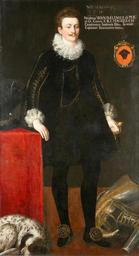 Keywords: Holbein the Younger Mikołaj Wandalin Mniszech.jpg workshop of ca 1615 oil canvas Institution National Museum Wrocław accession number VIII-0287 object history credit line http //www wilanow-palac pl/image php/16836/mal_nieokr_portr_m_mniszchastarostyjasielskiego_kop_obr_zok_1615_muz_nar_wewrocl_fot_a_podstawka jpg www wilanow-palac pl PD-old-100 DEFAULTSORT 1615 circa; Mikołaj Wandalin Mniszech Philipp Holbein II 17th-century paintings in the National Museum in Wrocław Polish paintings in the National Museum in Wrocław Mniszech family 1610s oil on canvas paintings Portrait 1610s paintings in Poland 1610s portrait paintings Male 17th-century men of Poland 17th-century oil portraits of standing men at full length 17th-century portrait paintings in Poland 17th-century portrait paintings with dogs 17th-century portraits with coat of arms Black clothing in art male Male shoes in portrait paintings Portrait paintings of men holding swords Portrait paintings of men with dogs Portrait paintings of standing men with hands resting on tables Portrait paintings with Spanish composition |