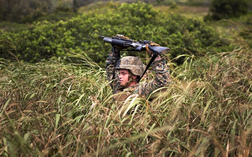| Keywords: Hold Your Rifle Up (10138042653).jpg Lance Cpl Ryan Lee team leader with 2nd platoon Bravo Company 1st Battalion 3rd Marine Regiment and 20-year-old native of Brandon Miss holds his rifle above his head while walking through a thick field of grass during a patrolling exercise at Kahuku Training Area Hawaii Sept 30 2013 The exercise was part of a weeklong course geared toward teaching new Marines proper patrolling techniques and getting familiar with their fellow peers U S Marine Corps photo by Lance Cpl Matthew Bragg/Released https //www flickr com/photos/marine_corps/10138042653/ Hold Your Rifle Up 2013-10-01 10 10 https //www flickr com/people/40927340 N03 Marines from Arlington VA United States PD-USGov United States Marine Corps Official Page https //flickr com/photos/40927340 N03/10138042653 2016-09-03 22 12 42 United States Government Work Marine Corps Base Hawaii Photojournalism One-third Photographers |