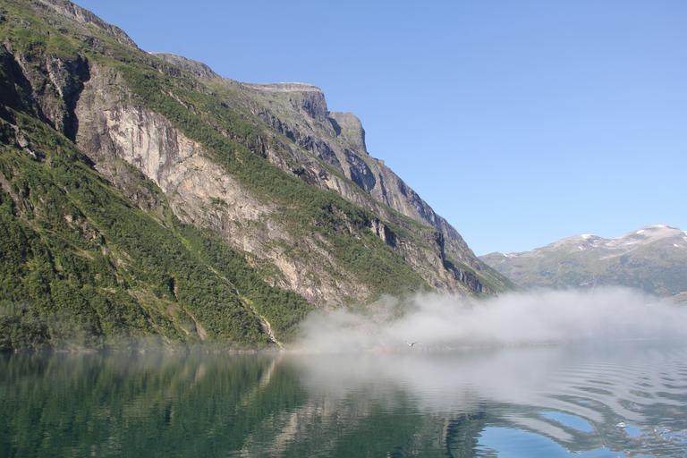 Keywords: holiday fjord norway boat water morning mist