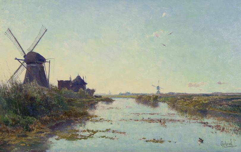 | Keywords: Hollands polderlandschap met een wetering, een Zuid-Hollandse watermolen en een wipwatermolen, door Paul Joseph Constantin Gabriël.jpg nl Hollands polderlandschap met een wetering een Zuid-Hollandse watermolen en een wipwatermolen oil on canvas 30 x 46 5 cm signed b r Gabriel f < 1903 http //www marksmit nl/kunstwerk/paul-gabriel-hollands-polderlandschap-met-een-wetering-een-zuid-hollandse-watermolen-en-een-wipwatermolen/ Mark Smit Kunsthandel Creator Paul Joseph Constantin Gabriël other versions Custom license marker 2016 09 30 PD-old-100 Paul Joseph Constantin Gabriël |