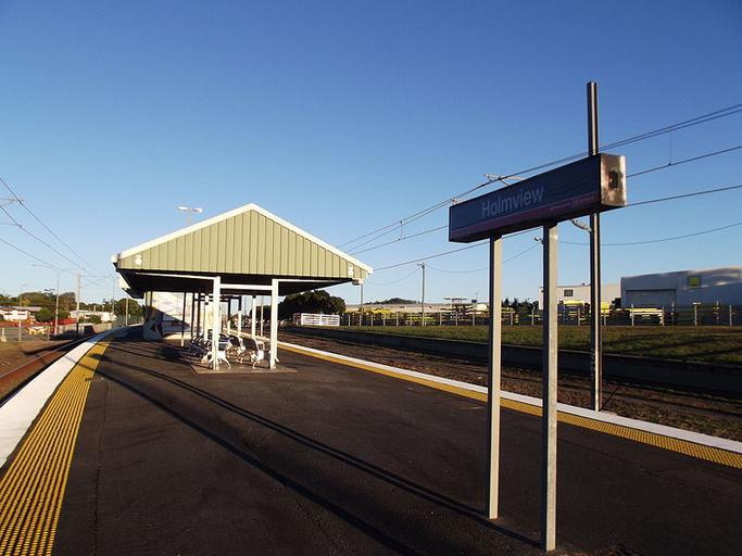Keywords: 27 43S 153 11E Holmview railway station is located on the Beenleigh line in Queensland, Australia. It is one of two stations serving the Logan suburb of Beenleigh. Opened 1885. attribution: TravellerQLD