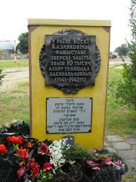 | Keywords: Holocaust in Pinsk 2b.jpg ru емо иал на месте бывшей де евни Козляковичи сейчас - в че те го ода на месте массовых убийств ев еев Пинска и военнопленных во в емя Холокоста аходится ядом со зданием го одского ГАИ на улице К айняя 15 2012-07-12 own Avner cc-zero Ghetto Pinsk Holocaust in Pinsk Uploaded with UploadWizard |