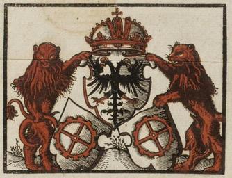 Keywords: Holtzkunst 1563 03a.jpg Detail vom Titelblatt Wappen von Mühlhausen im Elsass H B Verzeichnuß der figuren vnnd neuwen öfen / von der ersparung der neuwen erfundenen Holtzkunst Mülhausen im oberen Elsäß Schmid 1563<br />HAB Wolfenbüttel http //diglib hab de/drucke/o-92-2f-helmst/start htm 1563 žH B Author died more than 70 years ago - public domain PD-old-100 Holtzkunst 1563 Symbols of Mulhouse |
