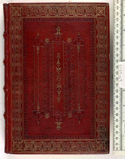 | Keywords: Holy Bible - Upper cover (c129m9).jpg Style Presentation; Caption Upper cover; Colour Red; Edge Gilt exhibition history Decorative Technique Tooled in blind Tooled in gold; Cover Material Goatskin includes morocco turkey etc Gift from Queen Caroline to William Austin Blue and beige silk double head bands Pale blue watered silk doublures and flyleaves object history Text 1817; London; Austin William object type Cc-zero place of creation Binding England place of discovery Unspecified British Library image http //www bl uk/catalogues/bookbindings/LargeImage aspx RecordId 020-000002676 ImageId ImageId 40943 Copyright BL Holy Bible Uploaded with GWToolset Holy Bible - Upper cover c129m9 http //www webarchive org uk/bldatasets/bindings/5431_4 jpg 19th-century bookbinding Bookbinding British Library Bookbindings |