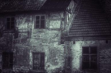 Keywords: home old ailing facade lapsed building ruin decay leave old house haunted house