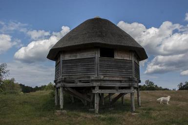 Keywords: home thatched roof reed vacation log cabin sky building blue architecture clouds tower landscape nature still beautiful