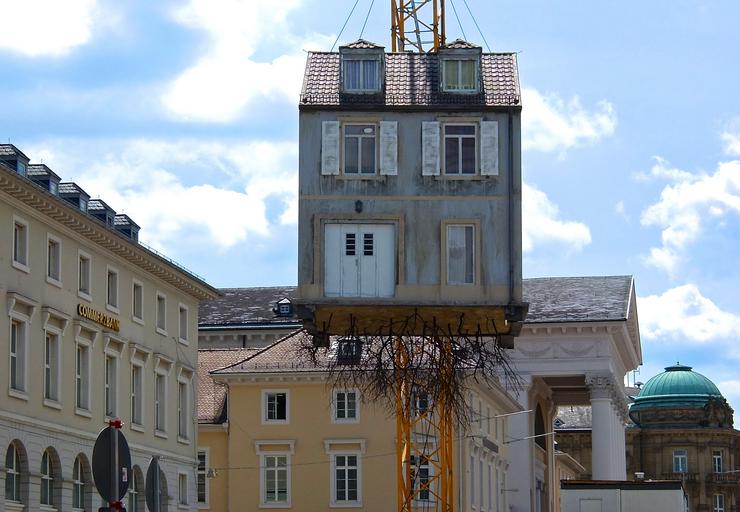 Keywords: home uprooted installation architecture art exhibition action karlsruhe art most construction road city
