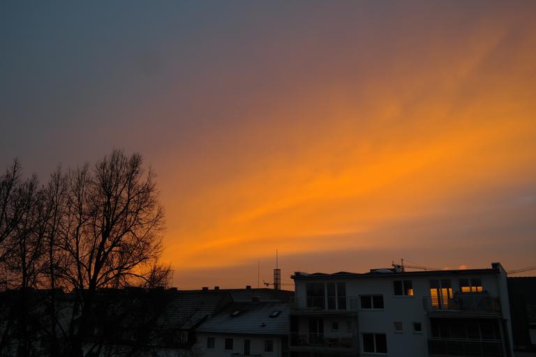 Keywords: homes church steeple abendstimmung sunset sky stripes orange twilight tree
