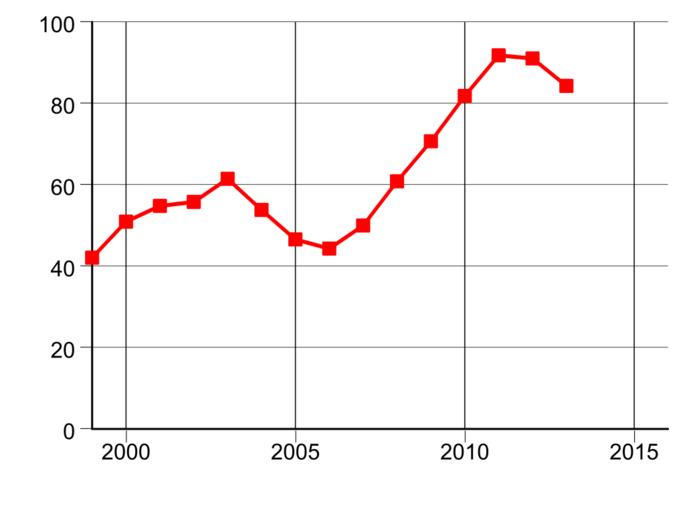 | Keywords: Homicide Rate in Honduras.svg en Homicide rate per 100 000 in Honduras Data taken from http //www indexmundi com/facts/honduras/homicide-rate 2016-08-17 own Delphi234 other versions current annually Generated with Wikimedia SVG Chart SVG Chart/box cc-zero Homicide rates Diagrams labelled with numbers only |