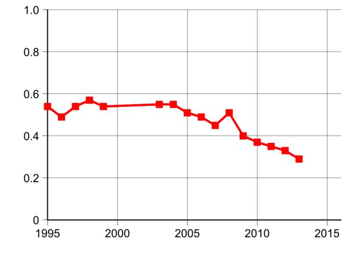 | Keywords: Homicide Rate in Japan.svg en Homicide rate per 100 000 in Japan Data taken from http //www indexmundi com/facts/japan/homicide-rate 2016-08-17 own Delphi234 other versions current annually Generated with Wikimedia SVG Chart SVG Chart/box cc-zero Homicide rates Murder in Japan Diagrams labelled with numbers only |