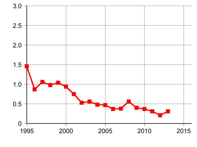 | Keywords: Homicide Rate in Singapore.svg en Homicide rate per 100 000 in Singapore Data taken from http //www indexmundi com/facts/singapore/homicide-rate 2016-08-17 own Delphi234 other versions current annually Generated with Wikimedia SVG Chart SVG Chart/box cc-zero Homicide rates Crime in Singapore Diagrams labelled with numbers only |