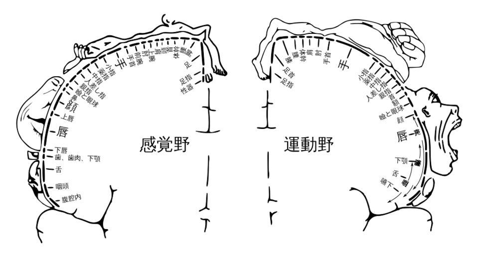 | Keywords: Homunculus-ja.svg diagram showing position of regions of the human cortex corresponding to the respective afferent/efferent nerve region of the body Writing in Japanese language 感覚皮質と運動皮質における身体の対 部位を示した図 ペンフィールドのホムンクルス Translated from Image Homunculus-de svg by Was a bee ドイツ語の画像よりWas a beeが翻訳 2005-12-17 mailto ralf ark in-berlin de PD-self Japanese png version 100px German version 100px Somatotopy Diagrams in Japanese | ||||
