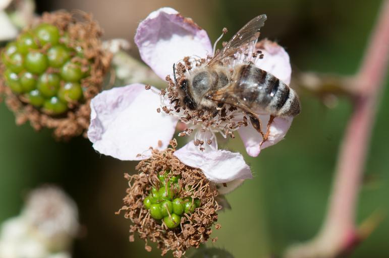 | Keywords: plant blossom macro outdoor animal insect butterfly Macro shot of a honeybee collecting nectar/pollen from a wild raspberry flower (genus Rubus). The plant grows on a fence outside my bedroom window. Green unripe raspberries to bottom and left. Macro shot of a honeybee collecting nectar/pollen from a wild raspberry flower (genus Rubus). The plant grows on a fence outside my bedroom window. Green unripe raspberries to bottom and left. | ||||