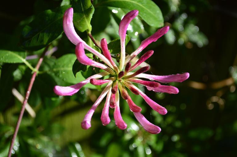 Keywords: honeysuckle flower buds plant leaf floral blossom flora bloom pink branch fresh blooming herbal natural