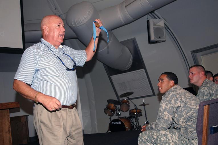 Keywords: Honor, Valor, Courage DVIDS194942.jpg en Retired Army Sgt Maj Gary Littrell a Medal of Honor recipient removes his medal from his neck to pass around to service members at Joint Task Force Guantanamo July 29 Littrell travels the country telling his stories and the importance of patriotism leadership democracy and the history of the Medal of Honor JTF Guantanamo conducts safe humane legal and transparent care and custody of detainees including those convicted by military commission and those ordered released by a court The JTF conducts intelligence collection analysis and dissemination for the protection of detainees and personnel working in JTF Guantanamo facilities and in support of the War on Terror JTF Guantanamo provides support to the Office of Military Commissions to law enforcement and to war crimes investigations The JTF conducts planning for and on order responds to Caribbean mass migration operations 2009-07-29 Petty Officer 1st Class Richard Wolff https //www dvidshub net/image/194942 090729-N-+++++-028 2009-08-14 11 09 GUANTANAMO BAY CU PD-USGov-Military-Navy Joint Task Force Guantanamo Guantanamo Bay Images from DoD uploaded by Fæ |