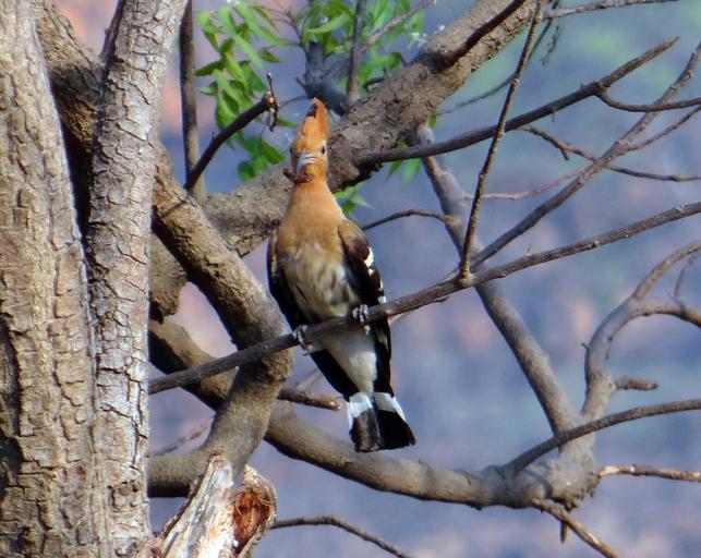 Keywords: hoopoe bird eurasian migratory upupa epops perched branch tree fauna aves avifauna avian india