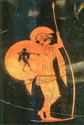Keywords: Hoplite from a vase found in Caere.jpg author Hoplita ábrázolása egy Caere-ben talált vázán B C 480 vázafestmény vase painting accession number object history credit line Scanned by Szilas from the book J M Roberts Kelet-Ázsia és a klasszikus Görögország East Asia and Classical Greece Commonist PD-old Hoplites in ancient Greek pottery