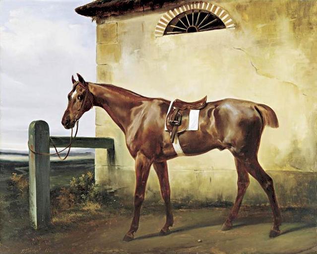 | Keywords: Horace Vernet - A Saddled Race Horse Tied to a Fence - WGA24752.jpg Artwork Creator Horace Vernet 1828 Oil on canvas size cm 82 101 Private collection accession number object history credit line WGA link 24752 http //www wga hu/art/v/vernet/horace/racehors jpg http //www wga hu/html/v/vernet/horace/racehors html PD-old-100 painting genre French 1801-1850 Paintings by Horace Vernet 1828 Paintings in unidentified private collections 1828 paintings 19th-century paintings of horses 1828 19th-century oil on canvas paintings 19th-century paintings in private collections WGA form painting WGA type genre WGA School French WGA time period 1801-1850 Oil paintings of horses 1820s paintings from France |