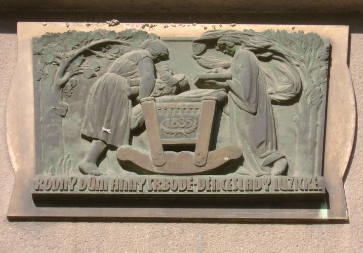 | Keywords: Hořice-deska-Srbová-Lužická.jpg Hořice Jičín District Hořice en Jičín District the Czech Republic <br />Anna Srbová pen name Věnceslava Lužická 1832 1920 a women writer was born here on Dezember 6 1832 On the plaques is written incorrect 1835 Věnceslava Lužická cs vlastním jménem Anna Srbová 1832 1920 spisovatelka často je uváděn nesprávný rok narození 1835 i zde pamětní deska na zdi rodného domu čp 38 Husova ulice Hořice cs okres Jičín <br /> Text 1835 Rodný dům Anny Srbové Věnceslavy Lužické own 2011-08-20 Jirka23 Cc-zero Plaques in Hořice Here-was-born plaques in the Czech Republic Plaques referencing 1835 Věnceslava Lužická |