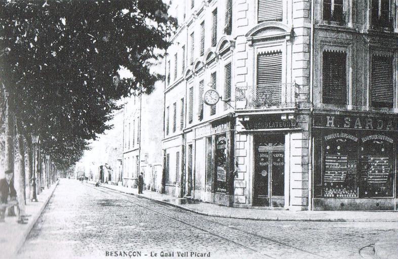 Keywords: Horlogerie Sarda - Besançon.jpg Besançon Doubs France Jean-Pierre Gavignet et Lyonel Estavoyer Besançon autrefois Horvath 1989 175 p - page 79 author date PD-old Historical images of Besançon Postcards of Doubs Shops in Doubs