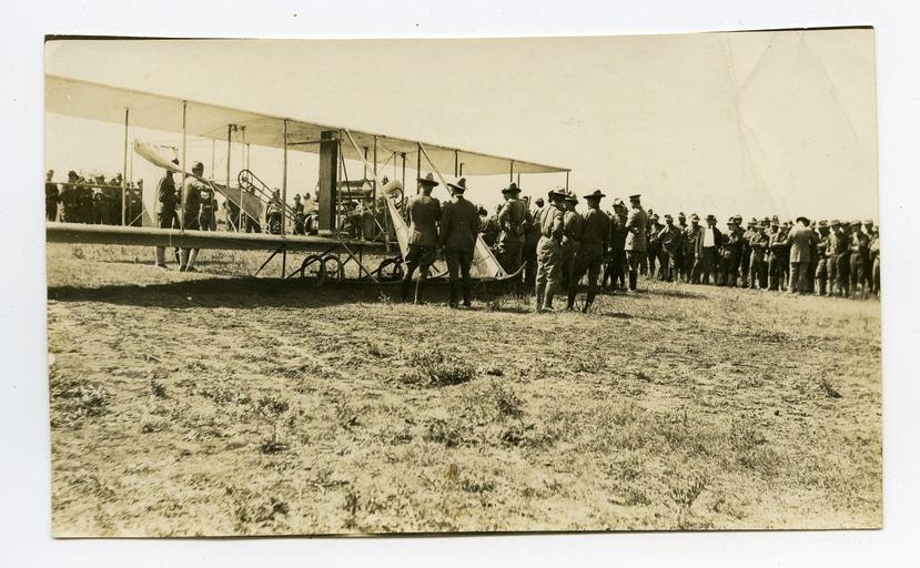 Keywords: Army officers inspecting the Aeroplane at the maneuver camp airplane aircraft biplane usarmy sanantoniotexas modelb fortsamhouston wrightmodelb wrightcompany wrightmodelbflyer