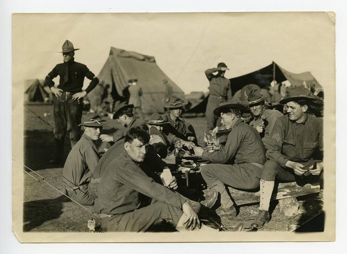 Keywords: An open-air mess in the maneuver camp soldier soldiers nco usarmy sergeant sanantoniotexas unitedstatesarmy fortsamhouston noncommissionedofficer campaignhat