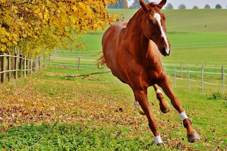 Keywords: horse animal ride reiterhof brown coupling meadow leaves autumn colorful