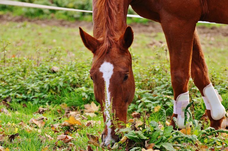 Keywords: horse animal ride reiterhof brown coupling meadow leaves autumn colorful