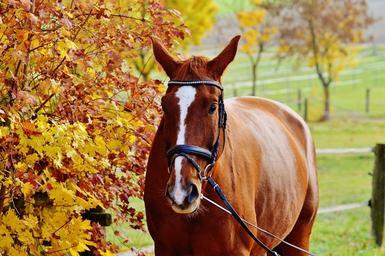 Keywords: horse animal ride reiterhof brown coupling meadow leaves autumn colorful