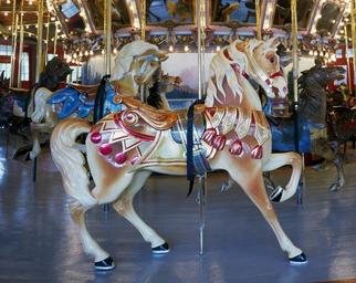 Keywords: horse carousel amusement park carnival fun ride entertainment merry-go-round vintage enjoyment leisure childhood play colorful recreation animal pony