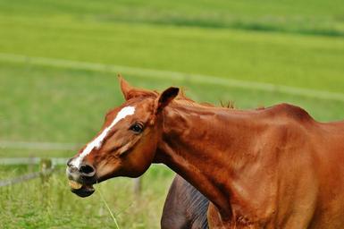 Keywords: horse coupling stallion eat paddock brown meadow pasture graze nature grass green