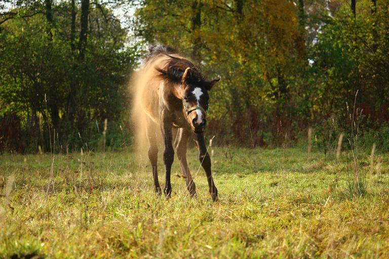 Keywords: horse foal dust pasture autumn rolling brown thoroughbred arabian pony brown mold young animal