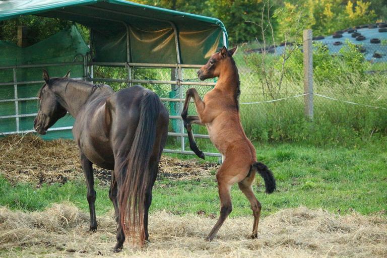 Keywords: horse foal suckling brown mold rap thoroughbred arabian high spirits rise mare with foal pasture meadow