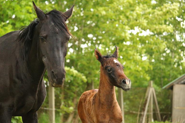Keywords: horse foal suckling brown mold thoroughbred arabian mare and foal rap