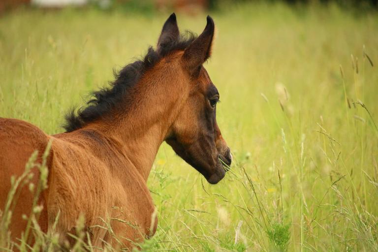 Keywords: horse foal suckling brown mold thoroughbred arabian pasture meadow grass