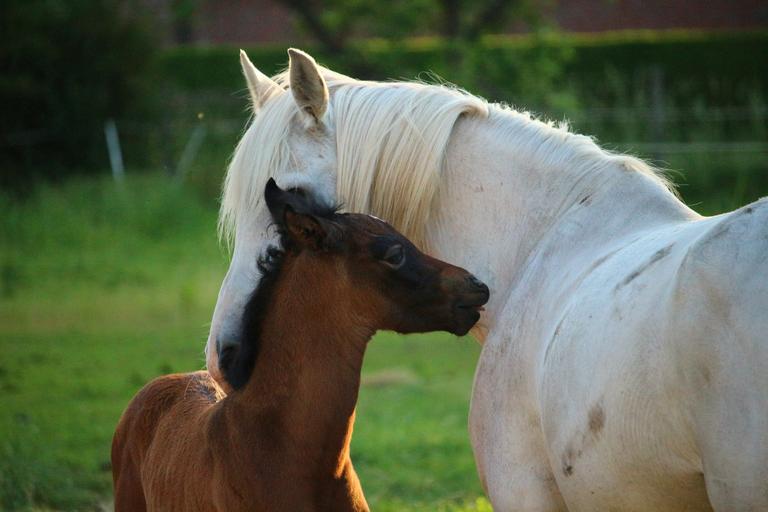 Keywords: horse foal suckling stallion mold brown mold thoroughbred arabian stallion and foal crawl social care pasture meadow