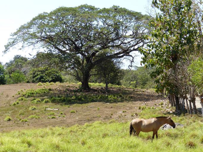 Keywords: horse meadow pasture tree branches nature costa rica central america tropics landscape