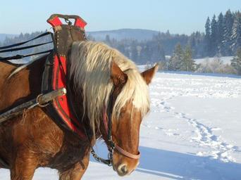 Keywords: horse nature landscape animal tourism good looking horse head farm head field snow winter winter landscape fir white sled jura doubs