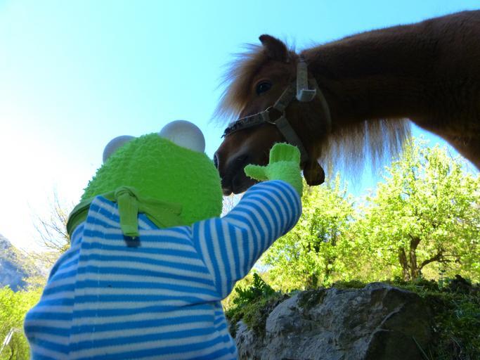 Keywords: horse pony animal wuschelig mane fur nice sweet brown kermit frog stroke green