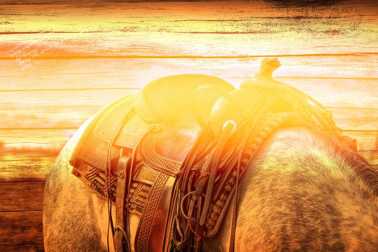 Keywords: horse's back ride horse saddle sunlight wood lighting equestrian saddle equestrian stimmug sunset