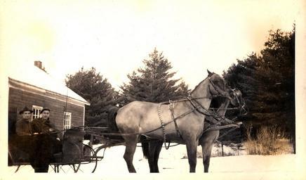 | Keywords: horse sleigh cutter cloyne hall barrie hall barriehall frontenac winter snow team outdoor serene animal Photo of horse and sleigh immediately south of the Cloyne Hall. Unknown date, but probably c1915 since the trees in the background are shadows of what they grew to be in the 1990s. Unknown people. Part of the Alfred Ross Oborne Collection. Photo of horse and sleigh immediately south of the Cloyne Hall. Unknown date, but probably c1915 since the trees in the background are shadows of what they grew to be in the 1990s. Unknown people. Part of the Alfred Ross Oborne Collection. |