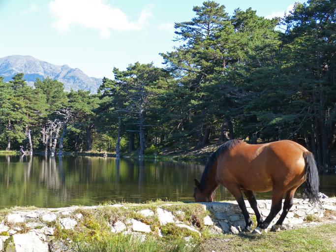 Keywords: horse watering is water trough bassa d'oles val d'aran lake pyrenee catalunya