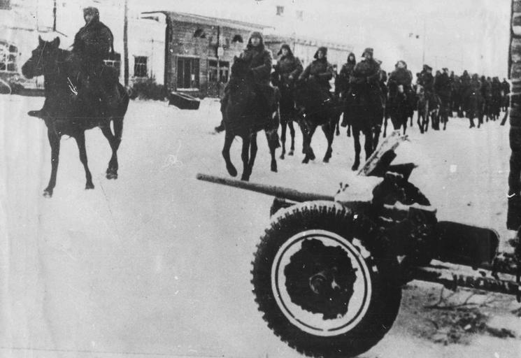 | Keywords: Horsemen of 1st Guard Cavalry Corps entering Odoev.jpg ru Конники 1-го гва дейского кавале ийский ко пуса гене ала Павла Алексеевича Белова вступают в го од Одоев а пе еднем плане захваченная немецкая 37-мм п отивотанковая пушка PaK 35/36 Одоев Тульская область 22 12 1941 1941-12-22 http //waralbum ru/178238/ author Custom license marker 2014 02 22 PD-Russia 1941 in Tula Oblast Battle of Moscow Uploaded with UploadWizard 1st Guard Cavalry Corps | ||||
