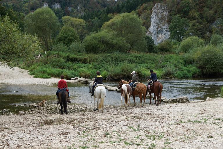 Keywords: horses danube water ride sport cross danube valley donauwelle stones river animal germany girl woman tree forest green blue nature landscape holiday benefit from relaxation fridingen beuron